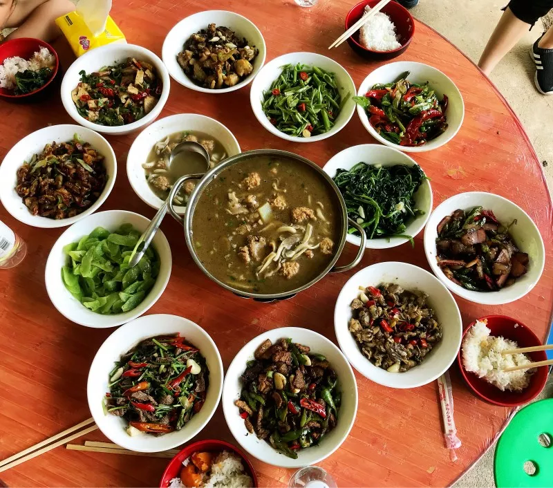 每一小組廚藝好的,擔任大廚,其他同事生火,切菜,打雜等,分工合作,協同配合,有條不紊。現場氣氛熱鬧無比,不時還傳來大家的驚呼聲和歡笑聲。大家忙中有樂,好一副其樂融融的畫面,頗有農家大院的味道。最后飯菜終于上桌了,陣陣菜香撲鼻而來,讓人垂涎三尺。大家看著桌上的飯菜,雖然沒有滿漢全席的豐盛,也沒有高檔飯店漂亮的色香味,但在大家眼里,這是我們共同的勞動成果,值得百倍珍惜。